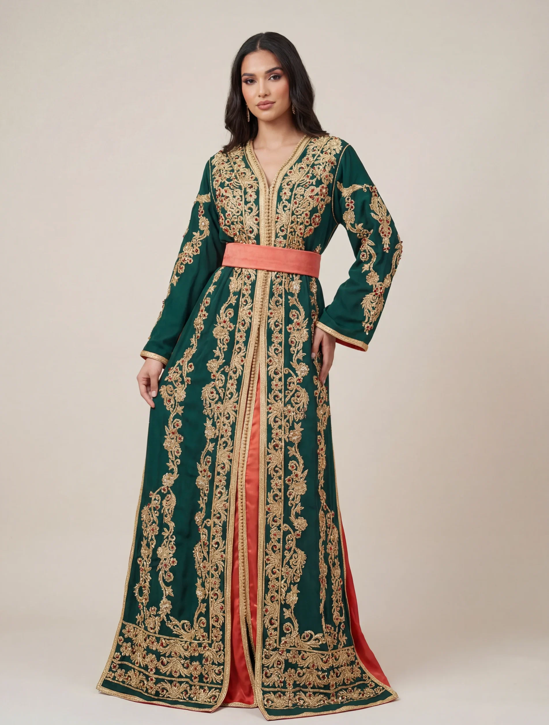 Cette tenue traditionnelle marocaine allie authenticité et modernité.
